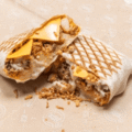Voor de echte kaasliefhebber. De French taco gevuld met Goudse kaassoufflé, crunchy chicken, extra cheddar kaas, frietjes, samurai saus en andalouse saus